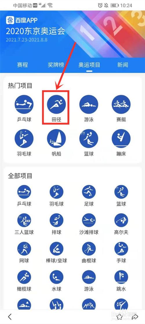 进入项目界面,选择【田径】。