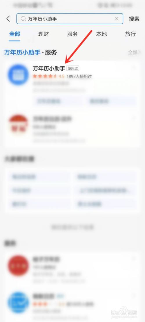END打开支付宝app,搜刮【万年历小助手】。