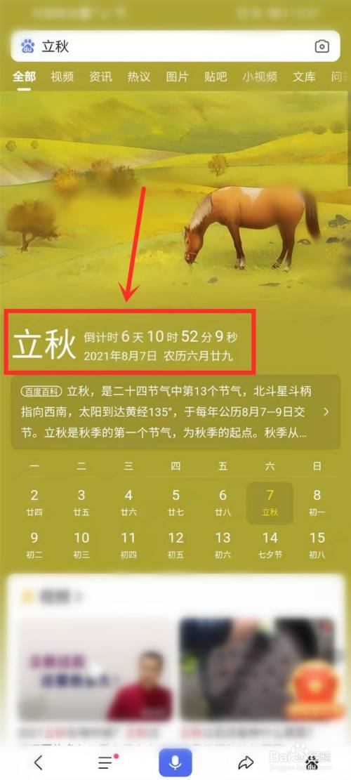 打开百度app,搜刮【立秋】。