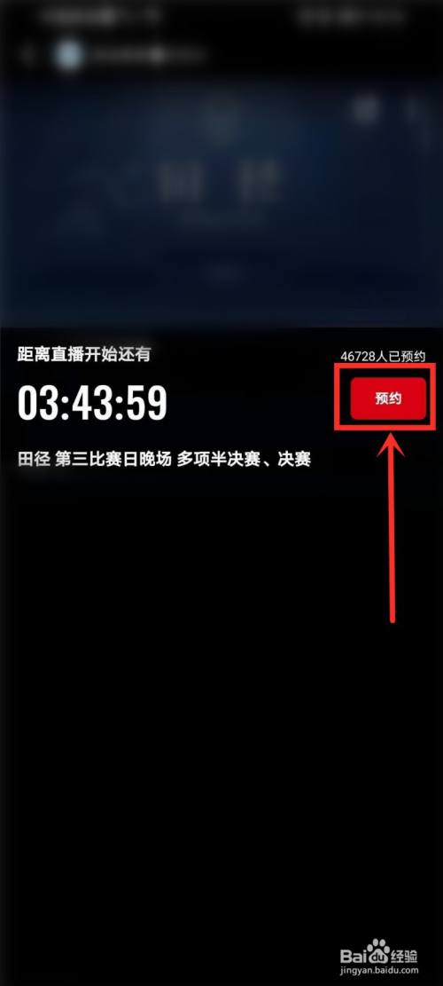 进入直播广场,下拉找到【田径第3角逐日晚场】,点击右侧【预约】。