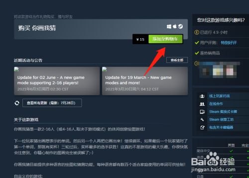 工具/原料影驰电脑win10方式/步骤1在电脑中打开steam。2输入draw&guess,点击搜刮。3点击draw&guess。4然后点击添加至购物车。5选择付条目体例,完当作支付。6然后安装draw&guess即可。7最后在电脑中启动draw&guess即可。END