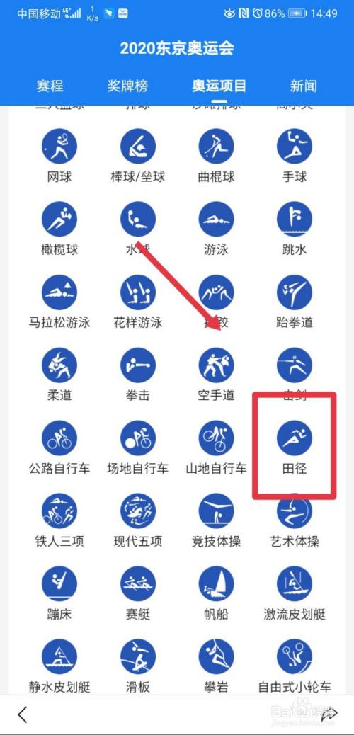 找到田径项目,点击进入详情页面。