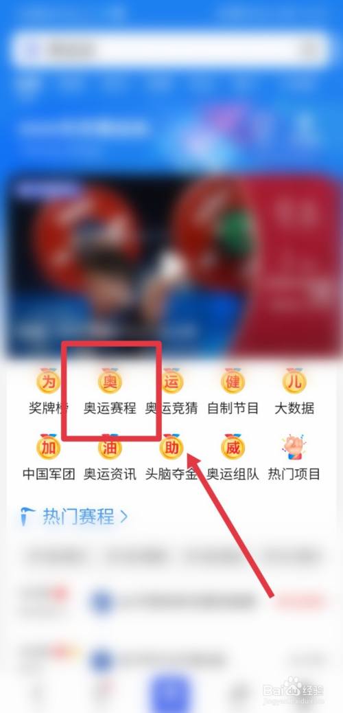 在百度app首页,点击顶部,进入奥运专属频道。