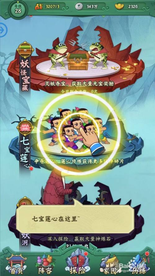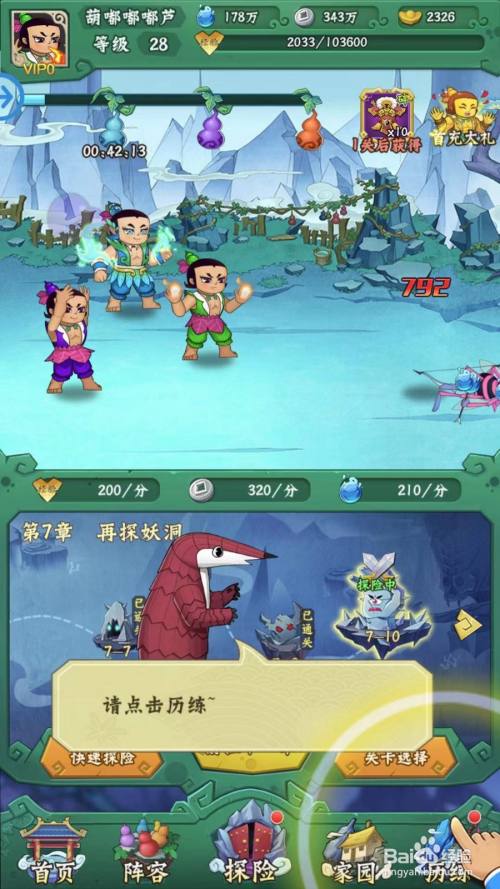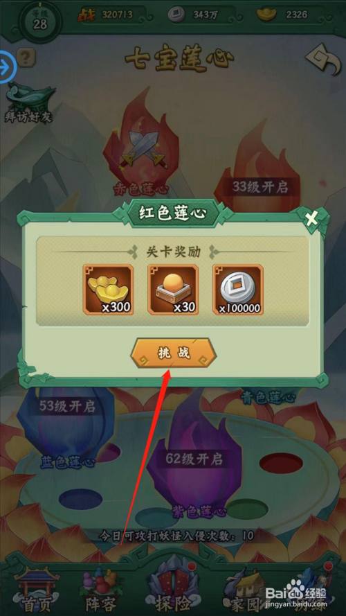 工具/原料苹果 7 PlusiOS 14.4.2葫芦兄弟:七子灭妖 1.01.打开历练1在手机桌面中,点击“葫芦兄弟:七子灭妖”游戏图标。2在“葫芦兄弟:七子灭妖”本家儿界面中,点击图中的“历练”按钮。END2.挑战七宝莲心1在“历练”界面中,点击“七宝莲心”选项框。2在弹出的“红色莲心”界面框中,点击“挑战”按钮。3点击“挑战”按钮后,显示“胜利”页面即可。END