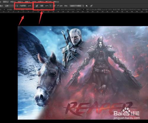 属性栏可以节制不透明度,可以调节省量,在订交的部门涂抹。