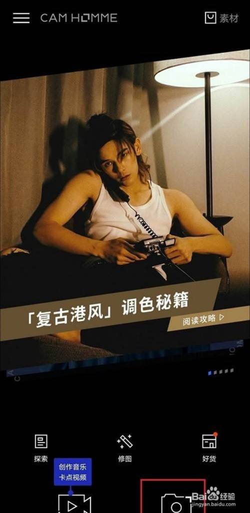 开启型男相机,点击自拍。