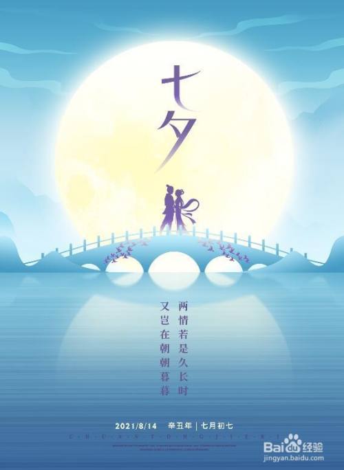 最后在月亮的位置写上本家儿题文字,七夕,做字体设计。