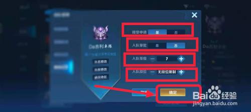 点击【点窜申请前提】后,进战队的要求就可以点窜了。如图: