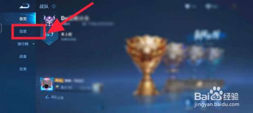 找到【战队】后接着在左边导航栏处找到并选择【信息】。如图: