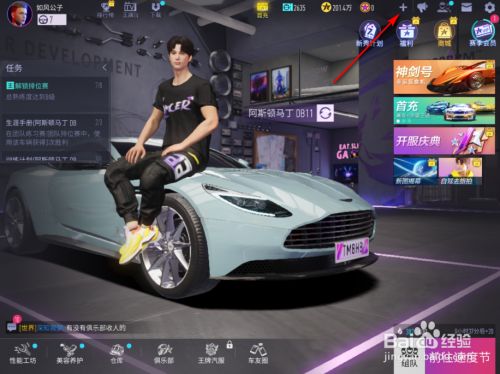 想要获得侧翼刀锋这辆赛车,进入游戏后首先需要点击首页右上角的【+】。