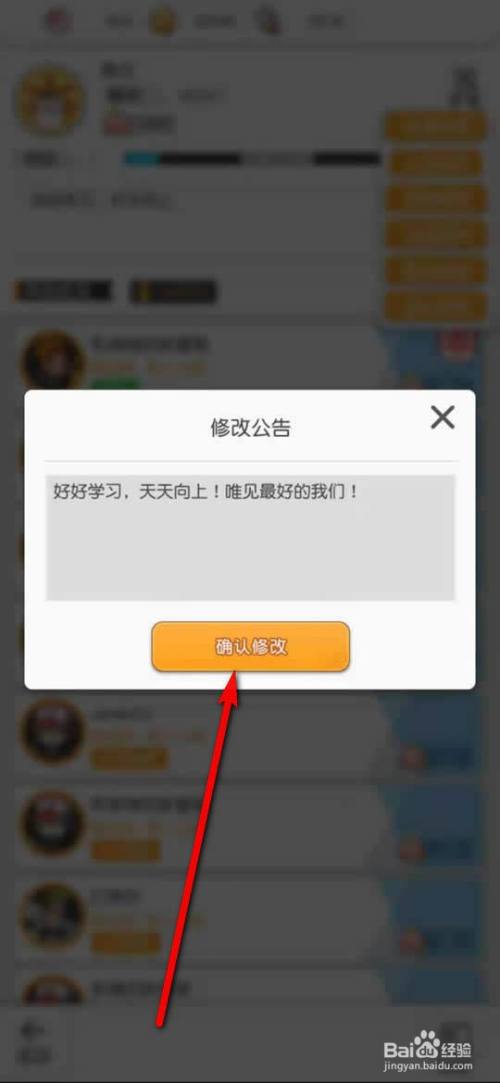 工具/原料荣耀9xEMUI10.1.0.133小浣熊百将传1.00.88方式/步骤1进入小浣熊百将传手游,点击“街区”。2点击“黉舍”。3点击“班级名册”。4点击“办理”。5点击“通知布告点窜”。6点窜班级通知布告,点击“确认点窜”即可完当作班级通知布告的点窜确认。END