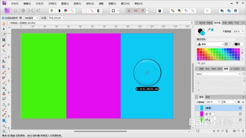 在软件中单击可以直接拾取颜色。而按住鼠标拖动,可以显示色彩模式的颜色强度值。