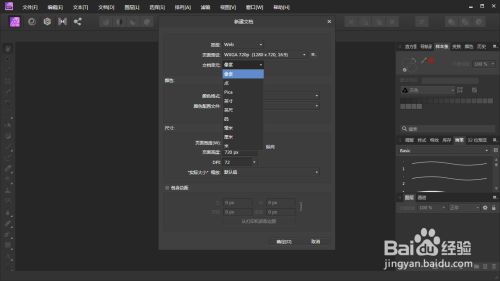 若是是常规模式,可以在“页面预设”中找到,如纸张的尺寸、手机设备的尺寸、浏览器的尺寸等。若是没有预设也可以手动输入尺寸等相关参数。