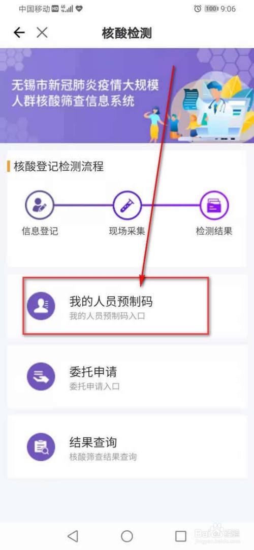 点击“我的人员预制码”即可获得无锡核酸检测预制码。