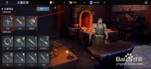 五.之后再选择一条目本身想要打造的刀兵,这里我们点击【双剑】。