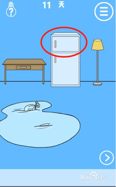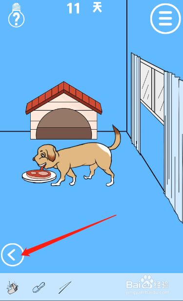 工具/原料联想小新13window10方式/步骤1首先我们打开房间里面的冰箱的冷藏室2然后我们拿到冷藏室里面的肉块3接着切换到右边的场景把肉块放到盘子里面4然后趁狗狗吃肉的时辰拿到狗舍里面的钩子5接着拉开窗帘拿到藏在窗帘后面的杆子6接着点击左下角的按钮回到左边的场景7然后利用钩子钓到水里面的袋子8最后拿到袋子里面的手机即可过关END