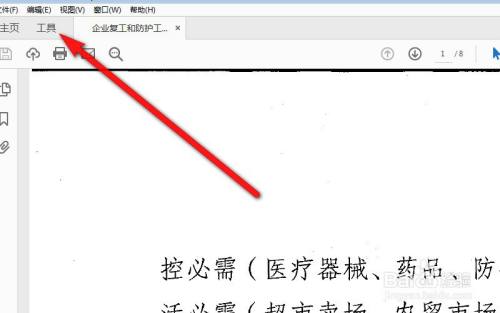 用Adobe Acrobat Pro DC打开需要插入空白页的pdf文档,单击打开“东西”面板。