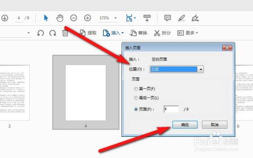 选择插入位置,单击“确定”即可在指定位置插入一页空白页。