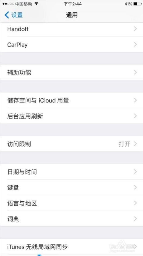 在通用里找到拜候限制,点击打开。