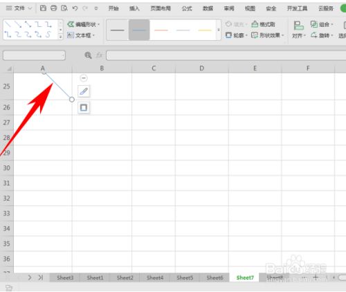 然后在表格傍边插入直线,表格需要拉大一点,将直线如下图插入到表格中。