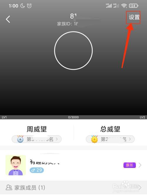 在家族内点击右上角的设置;
