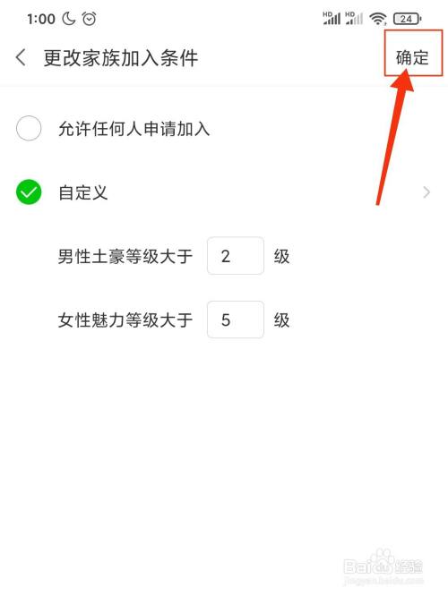 自界说更改家族插手品级后,点击确定按钮。