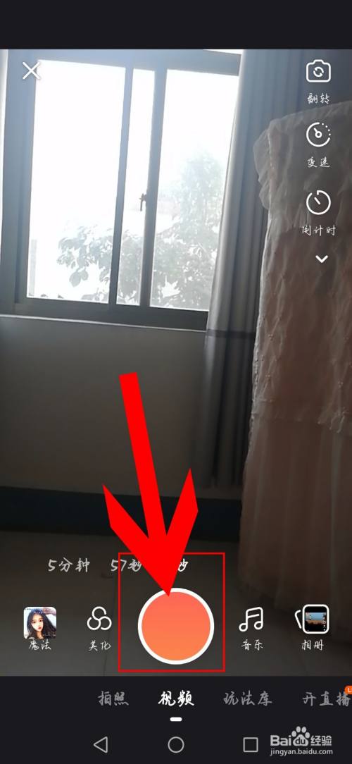 第一步打开手机上的快手app,点击下方的"录制按钮"