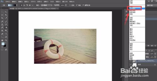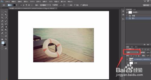下面,我们来到图层面板,选中图片图层,找到下图框选所示的【图层夹杂模式】,将其改为【正片叠底】。