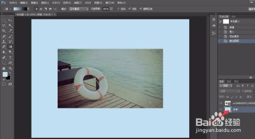我们选择布景图层,按alt加delete键,给布景图层填充本身喜好的色彩。如下图,我们发现,图片的色彩也发生改变。