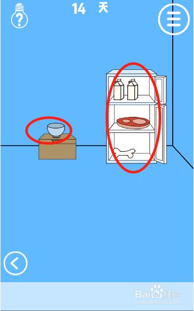 工具/原料联想小新13window10方式/步骤1首先点击右下角的按钮切换到右边的场景2然后打开房间里面的冰箱3然后拿走冰箱里面的牛奶、肉块、骨头还有盒子上面的碗4接着回到左边的场景把肉块放到盘子里面5狗爸爸吃完之后,再把骨头放到盘子里面6狗妈妈叼走骨头之后,把碗放在盘子里并倒上牛奶7狗宝宝喝完牛奶之后我们就可以拿走手机啦END