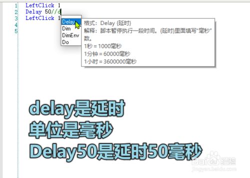 因为是想要持续点击,所有就需要设置一个延迟,可以设置当作50毫秒,延迟的写法是Delay 50,或者也可以更小或者更大。