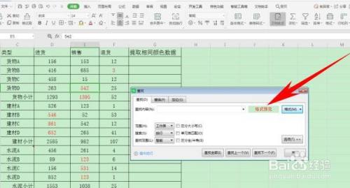 3、这时鼠标会变为画笔,单击标红数据,可以看到格局旁边的格局预览四个字已经变为了不异的红色, 单击查找全数。
