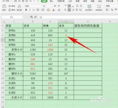5、然后,在G列提取不异颜色数据的列傍边进行粘贴即可,这样所有的标红数据就被一键提掏出来了。