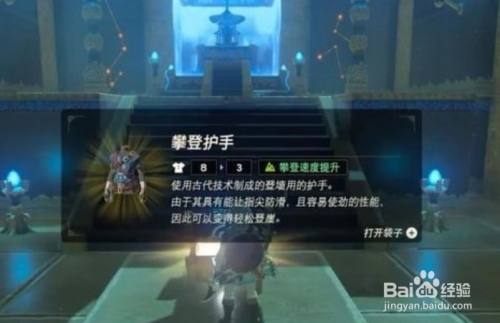工具/原料小米MIUI10.2塞尔达方式/步骤1首先去往双子山,在神庙中经由过程一个简单的机关获得攀缘头巾。2然后去往哈特尔海,在神庙中打垮神庙守护者获得攀缘护手。3最后去往拉利尔山,松树群有个山洞用炸弹打开山洞。4山洞里是一个神庙,在神庙中直接获得攀缘鞋。END
