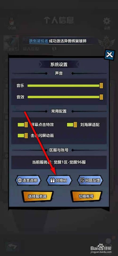 工具/原料荣耀9xEMUI10.1.0.133火柴人醒觉1.2方式/步骤1在火柴人醒觉手游,点击左上角的用户头像。2点击“设置”。3点击“兑换码”。4点击“输入兑换码”文本框。5输入兑换码,点击“发送”。6点击“确认”即可当作功兑换。7点击“邮件”打开邮箱。8点击“一键领取”。9即可当作功领取兑换奖励,点击空白区域封闭即可。END