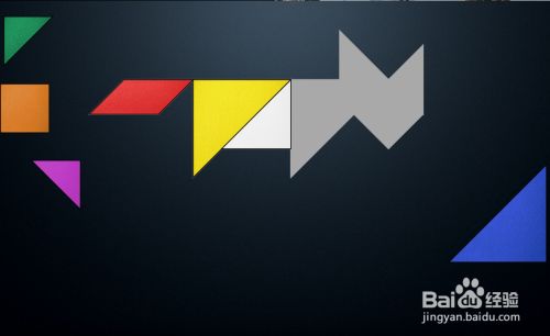 点击白色三角形,让其扭转至如图所示的角度,放在黄色三角形右侧。