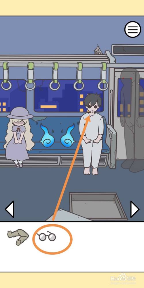 用【铰剪】剪去第四页的头发,就能在车座下拿到一副【眼镜】。