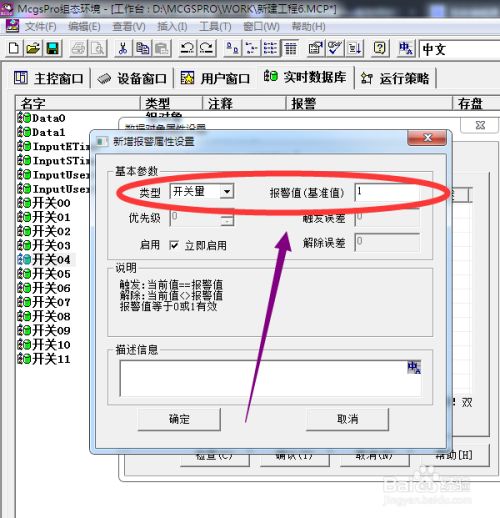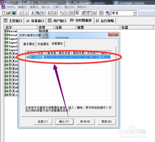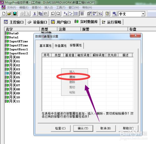 退出到数据对象属性设置菜单中设置的报警信息就显示出来了