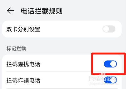 第五步,滑动阻挡骚扰德律风右边的滑块即可