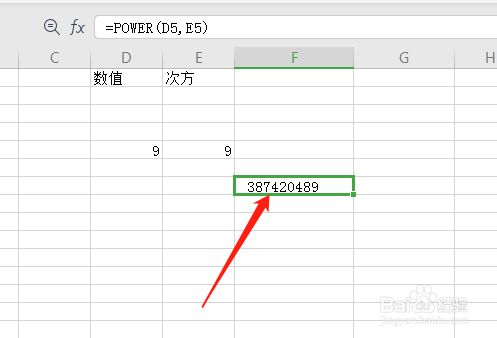 在函数参数页面选择数值为【9】,幂为【9】。