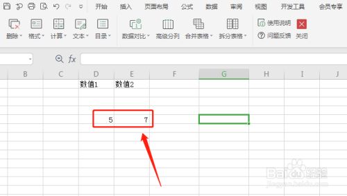 然后利用鼠标同时选中数值【5】和【7】,激活函数功能。