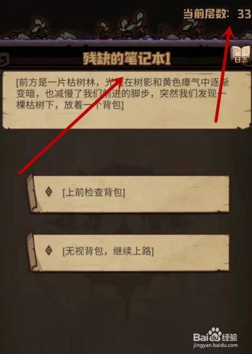 在第33层进入故事触发残破的笔记使命,残破的笔记也是分5个故事,每个故事均选择第一个选项,战力在100k摆布即可完当作。