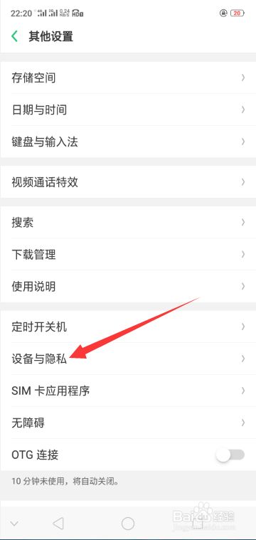 在进入其他设置本家儿界面后,点击【设备与隐私】,进入设备与隐私本家儿界面