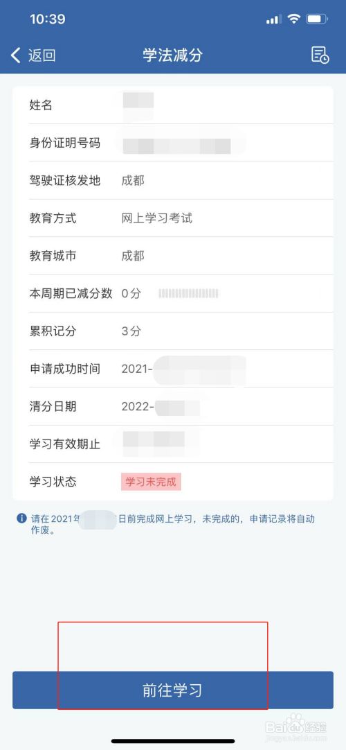在学法减分申请提交经由过程审核后,就可以点击下方前去进修了;