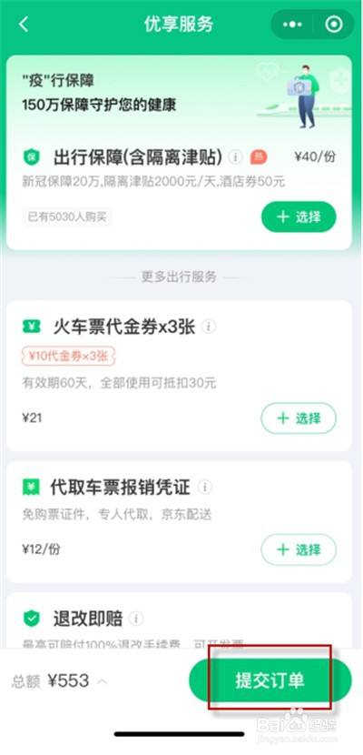 7、进入订单界面,确认购票信息后提交订单付条目即可。