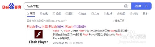 若是仍不克不及正常浏览flash,那么就在百度上搜刮“flash下载”,然后点击第一个搜刮成果。