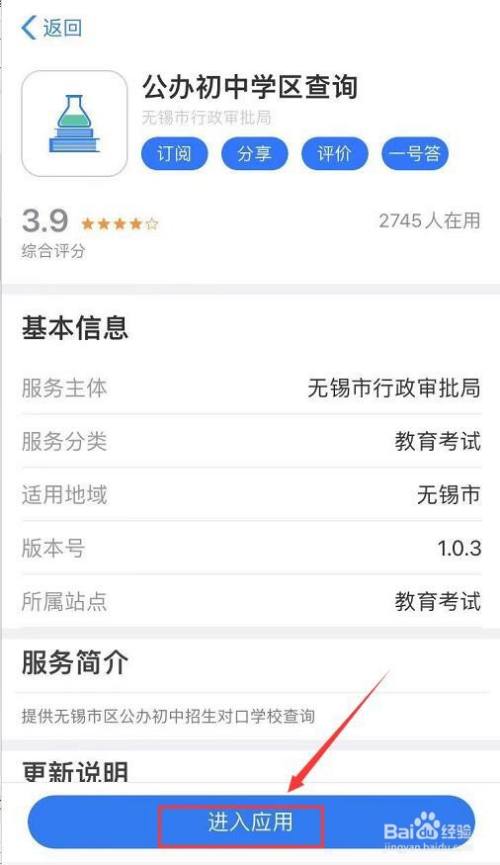 在公办初中学区查询界面,点击【进入应用】。