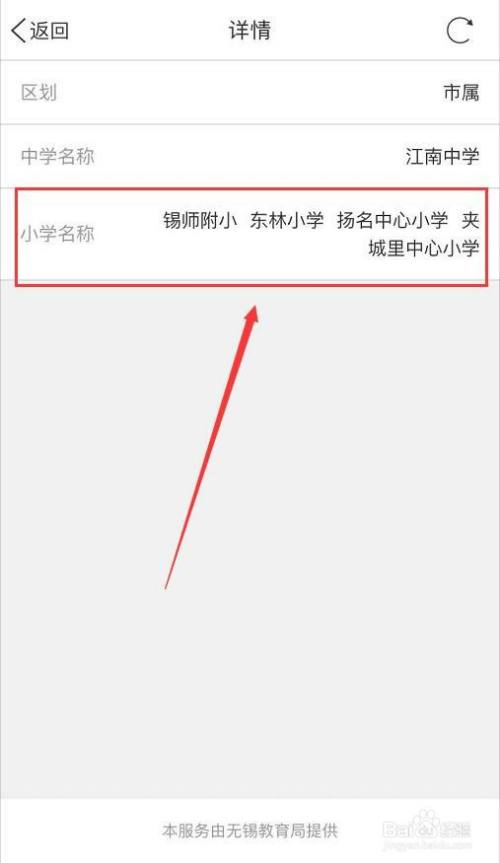 然后便可以看到该初中对应的小学名称。