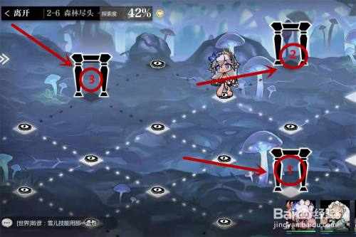 进入2-6关卡,标的目的地图右侧走进密林,具体路线如图,在位置1拿左眼,位置2拿挖掘东西,位置3转转盘。