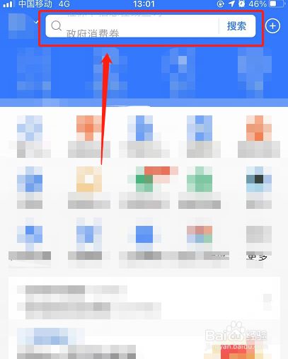 打开手机支付宝,在最上方搜刮栏中输入并搜刮【国度政务办事平台】。